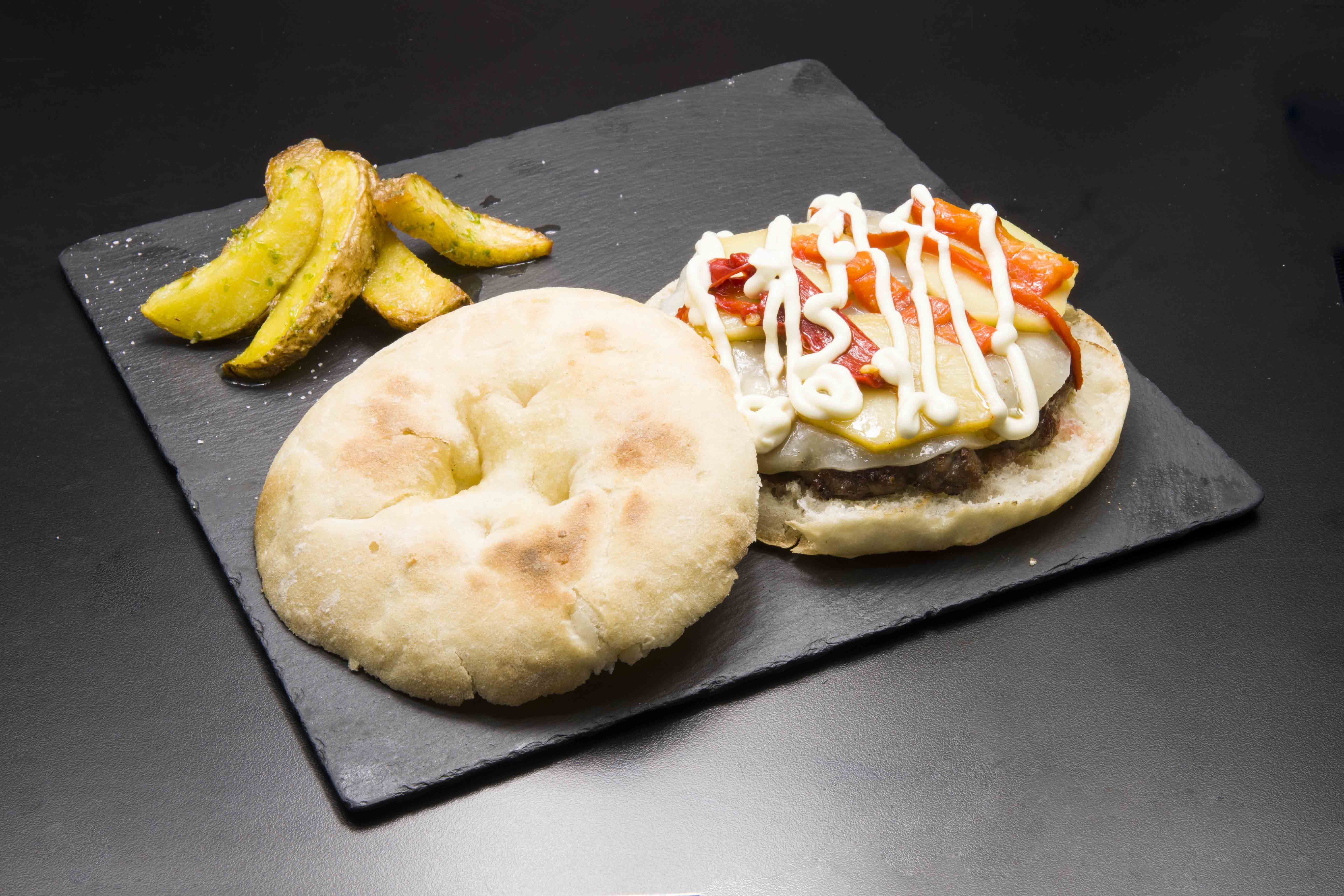 Carne de Ternasco, queso Patamulo®, pimientos, patatas asadas y ajoaceite. ¡S-A-B-R-O-S-A!